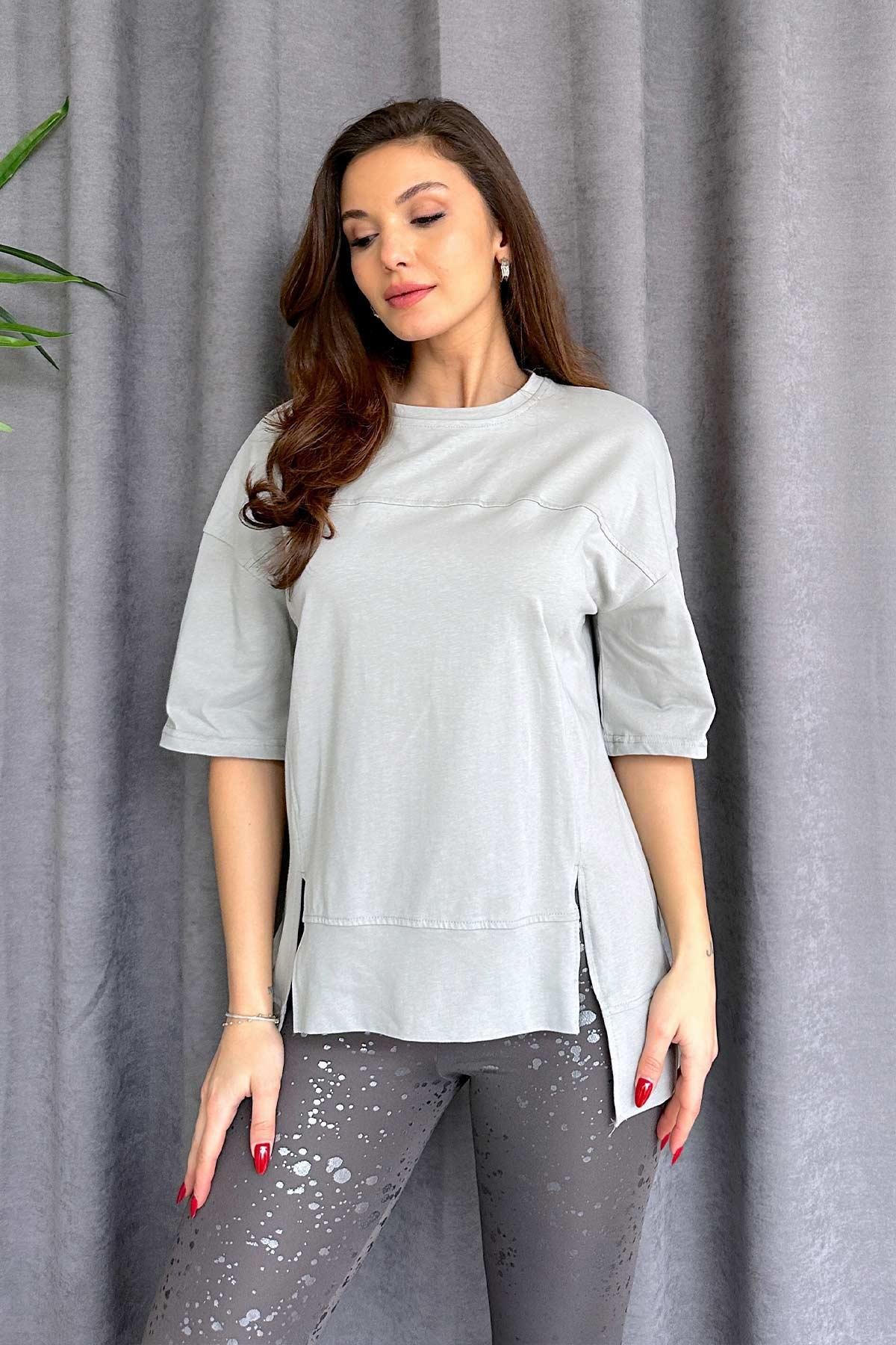 ETEĞİ YIRTMAÇ DETAYLI OVERSİZE PARÇALI TİŞÖRT GRİ (MS00421)